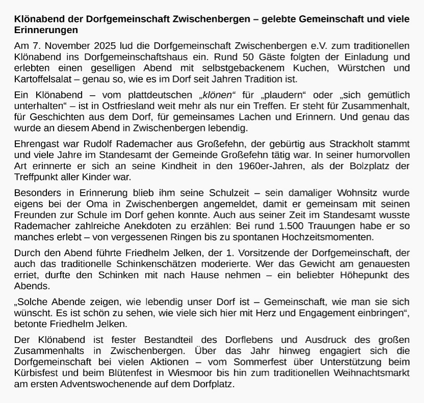 Wir von der Dorfgemeinschaft möchten, daß noch viele von diesem Angebot Gebrauch machen können.