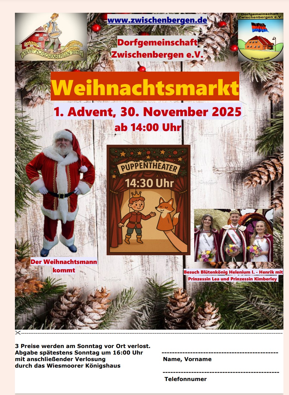 Wir freuen uns auf Euren Besuch auf unserem Weihnachtsmarkt am 1. Adventswochenende in Zwischenbergen.